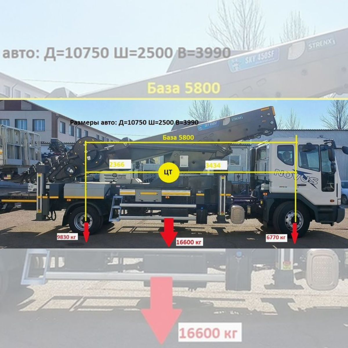 - Снаряженная масса по осям: Передняя ось 6770 кг.