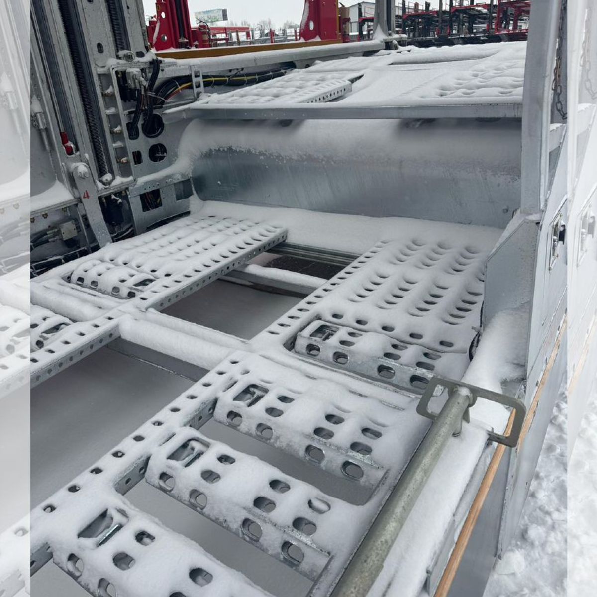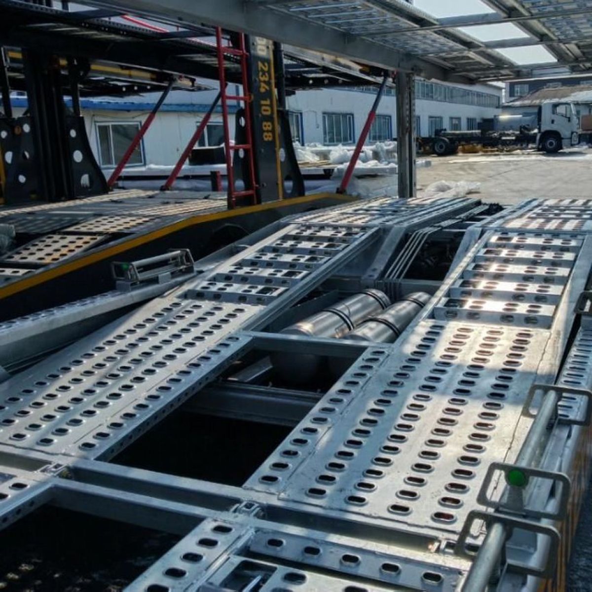 - Изгиб oбeиx сторон балки толщиной 10 мм (сталь Q345В), толщина средней балки 16 мм. (Балка изготовлена из низкотемпературного материала Q355ЕВ, верхняя балка изготовлена из высокопрочной стали 700, лестница изготовлена из стали 1500, а остальные части изготовлены из стали (Q235В.)Шины: КUМНО (Корея) 245/70 R17.5
