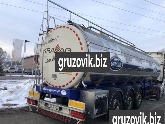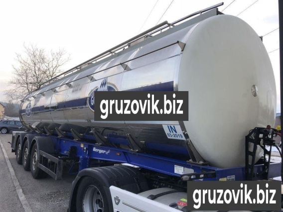 пищевая цистерна Berger / Santi 03/ 2013 год 30.000 литров. 3 камеры 3 камеры: 12000 + 6000 + 12000 литров промывочные головки сливные трубы изолированы BPW оси, подъемная ось, дисковый тормоз резина остаток 70 - 80 % Собственный вес 5700 kg.