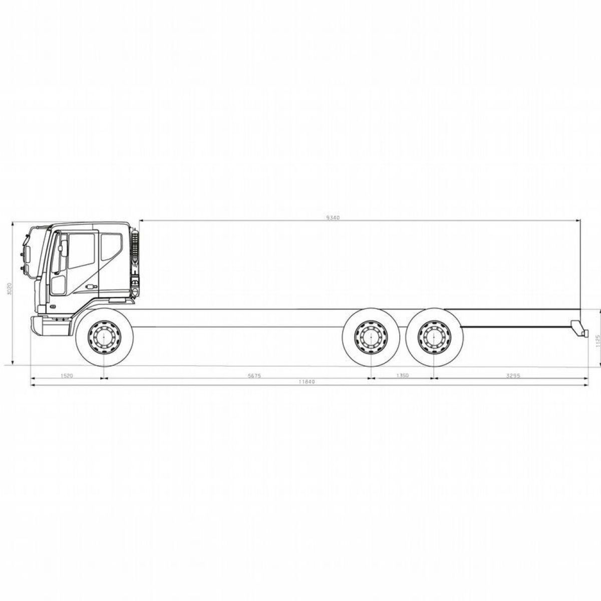 Габариты шасси, ДхШхВ 11840х2495х3020 мм