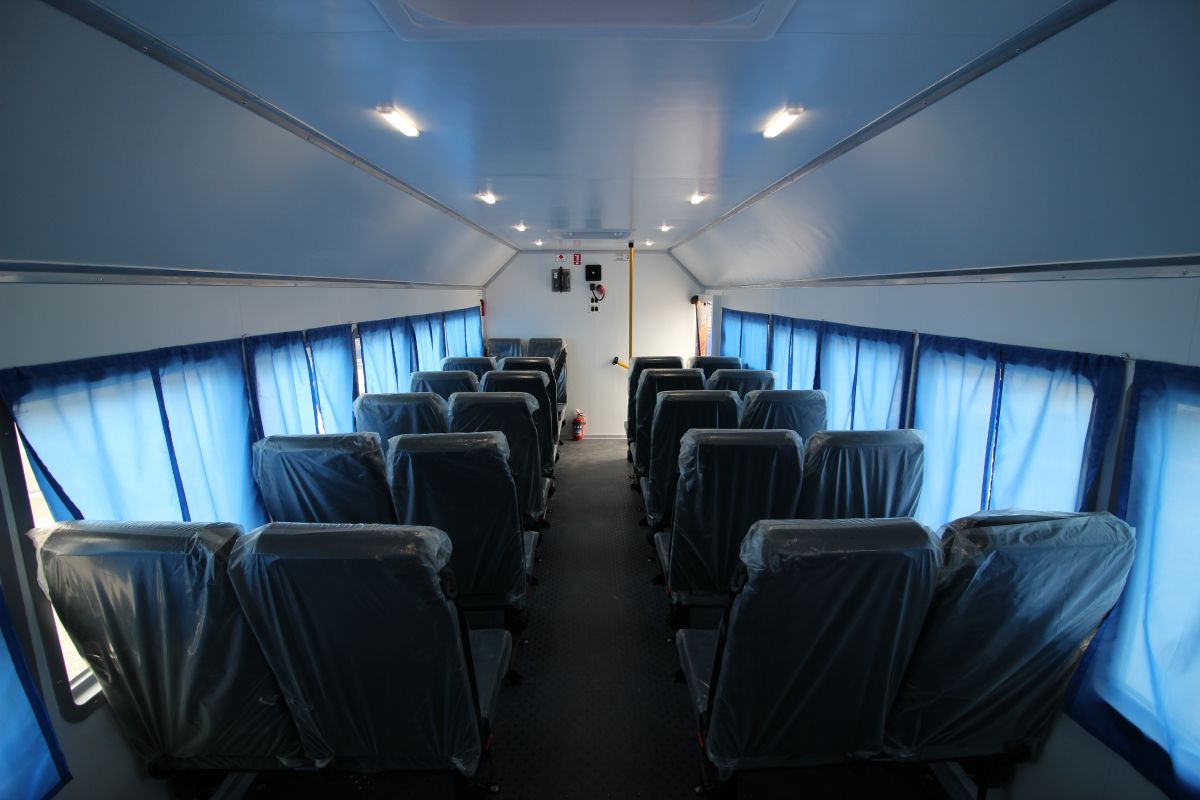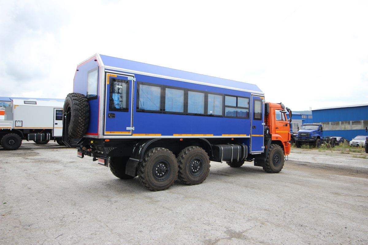 Колесная формула 6х6, дв. КАМАЗ 740.705-300(Е-5), КПП 154, МКБ, МОБ, топл. ап., система нейтрализ. ОГ(AdBlue), ДЗК, без тахографа, пассажировместимость 28 мест, фургон из сэндвич-панелей.