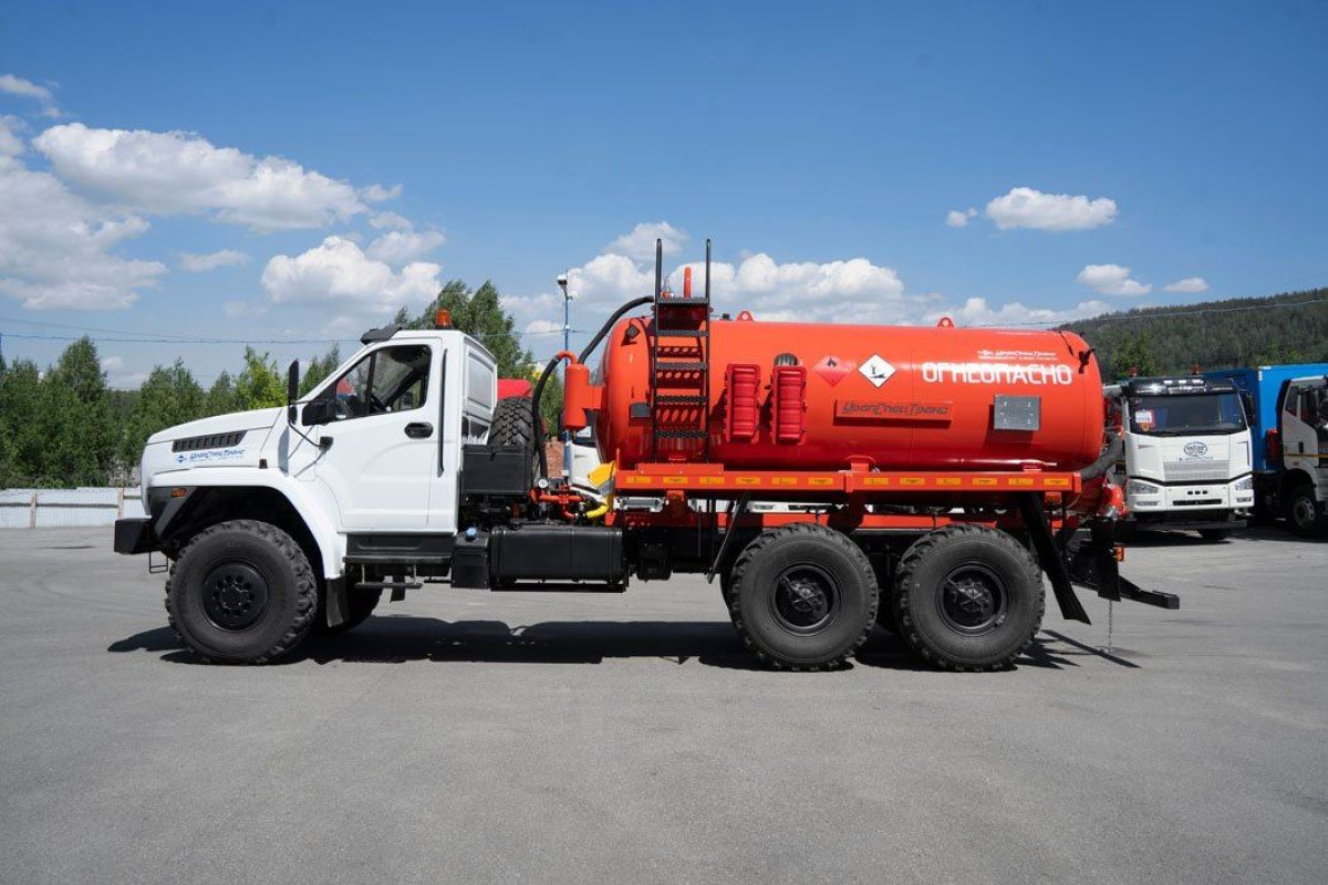 Автоцистерна вакуумная, 10 м3, насос КО-505, ревизионный люк, подогрев сливного крана, 6х6, 273 л.с., дв. ЯМЗ 536, КП ЯМЗ-1105, Держатели для табличек, пеналы для огнетушителя, УВЭОС, тахограф под ADR, кнопки отключения массы в кабине по ДОПОГ, наружная кнопка отключения массы по IP65, УОС, набор ДОПОГ, колпачки на клеммы АКБ