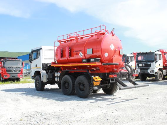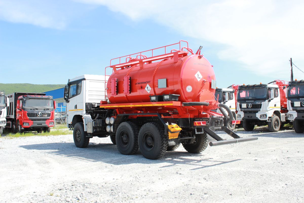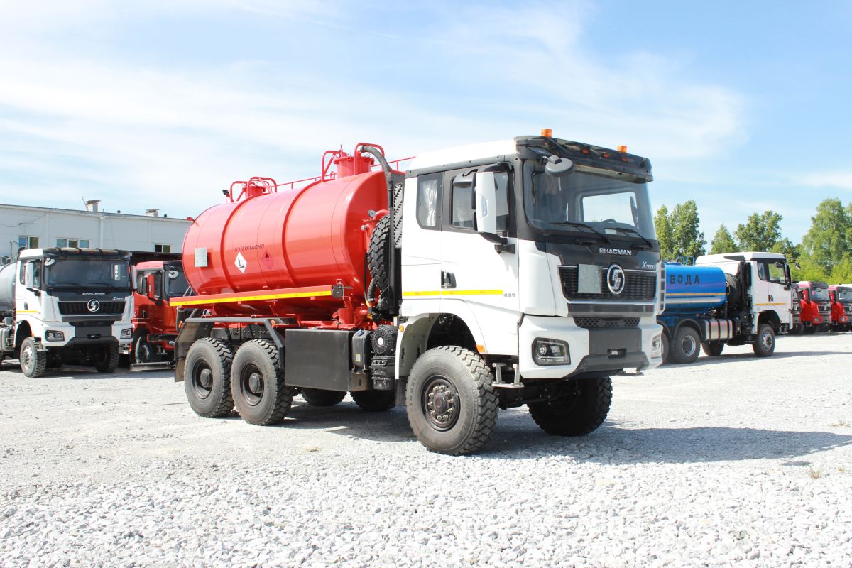 Автоцистерна АКН-12 на Шасси SX32586V385, 6×6, кабина X3000 Рестайлинг, WP12.430E50, КПП: 12JSDX220TA-B+КОМ, раздаточная коробка ZQC2000, шины 315/80R22,5 (односкатная ошиновка).