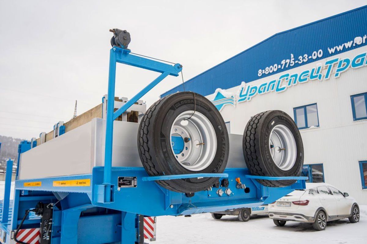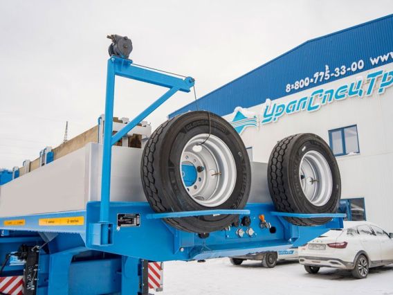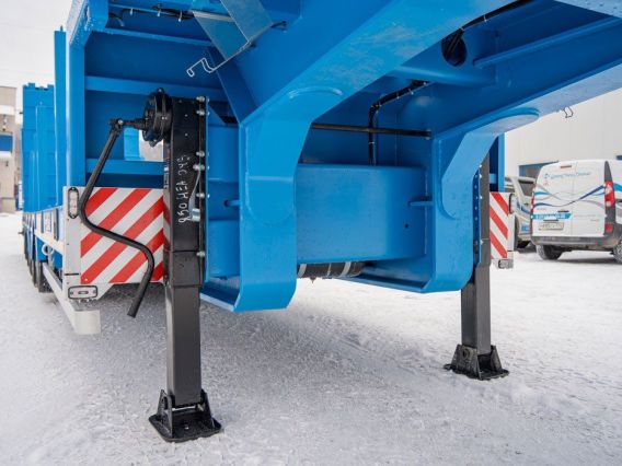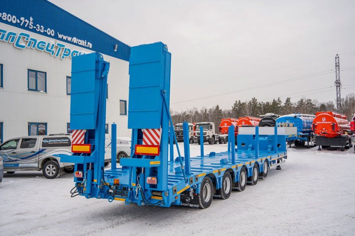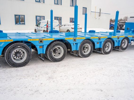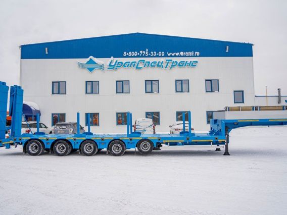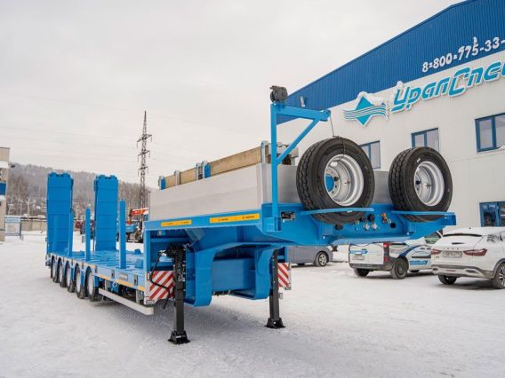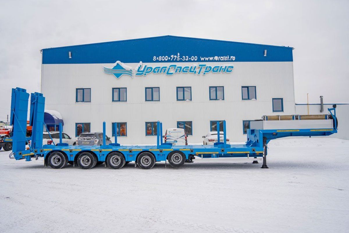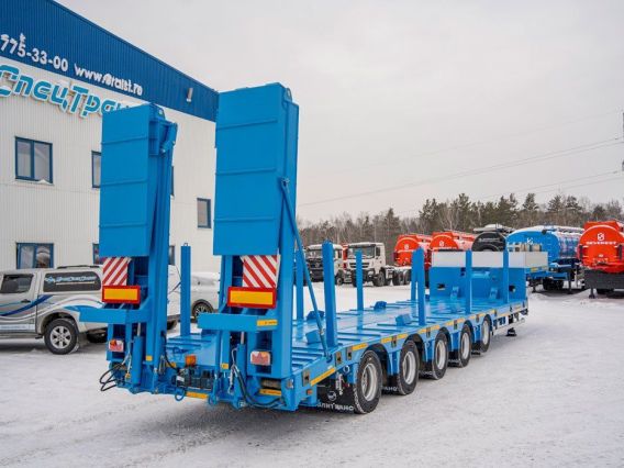 Полуприцеп тяжеловоз, 61,1 тн, 5 осей, двускатный, шины 235/75R17,5, пневматическая подвеска, гидравлические трапы, платформа 9930х2500(3000)/924 мм, передняя подъемная ось, четвертая и пятая ось подруливающая