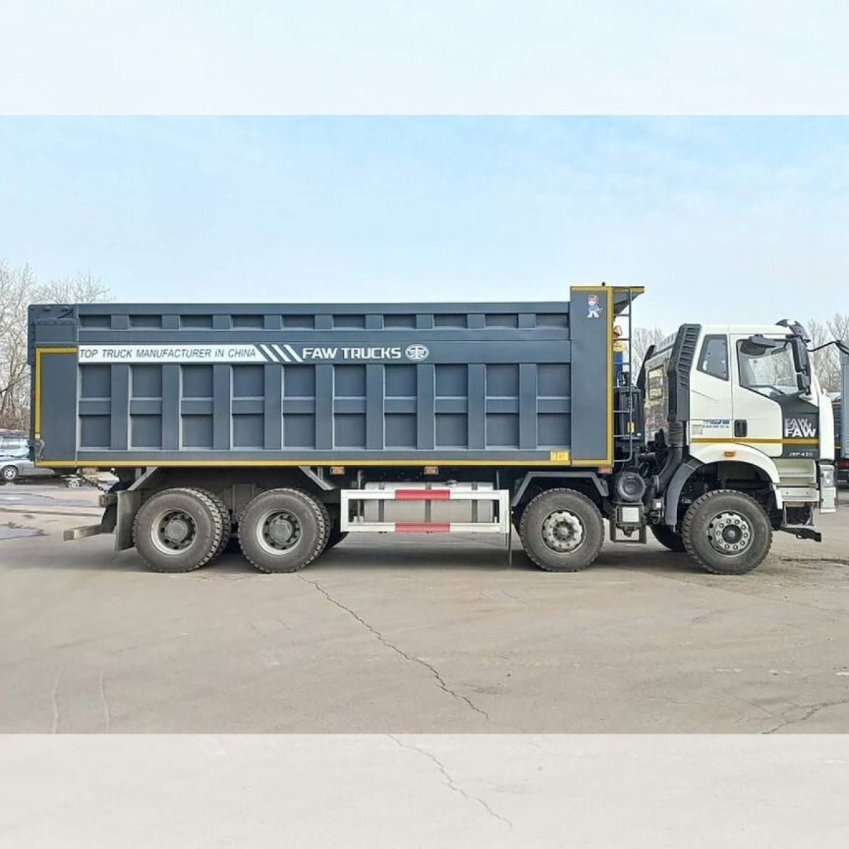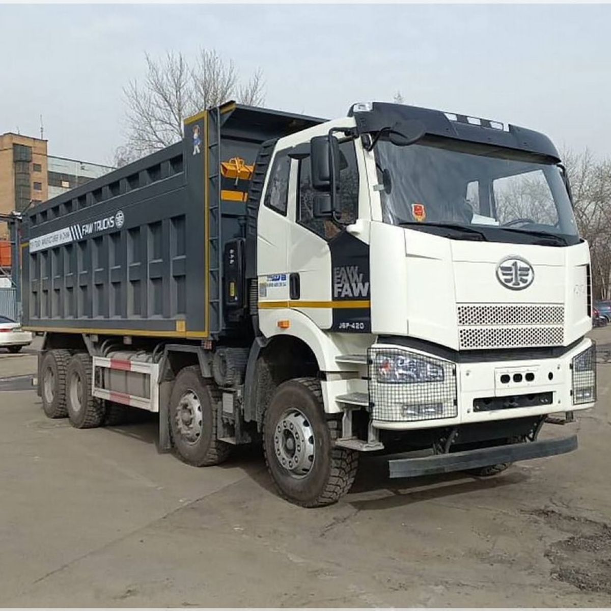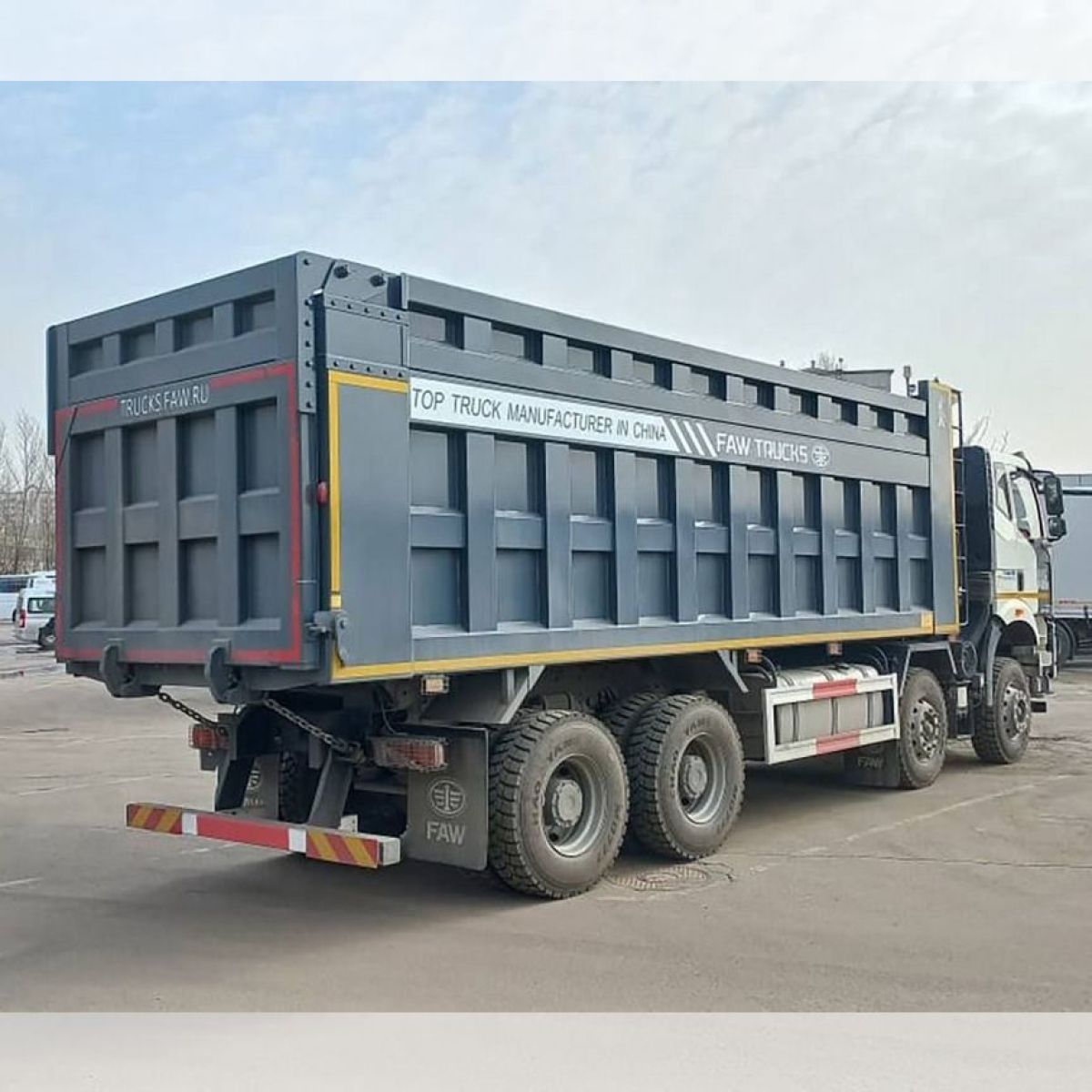 Новейший четырехосный самосвал FАW с кабиной J6 предназначен для работы в тяжелых условиях с сыпучими грузами различной направленности. Данная модель оснащена высоким кузовом с надставными бортами, объемом 34 м3 (без бортов 26 м3).