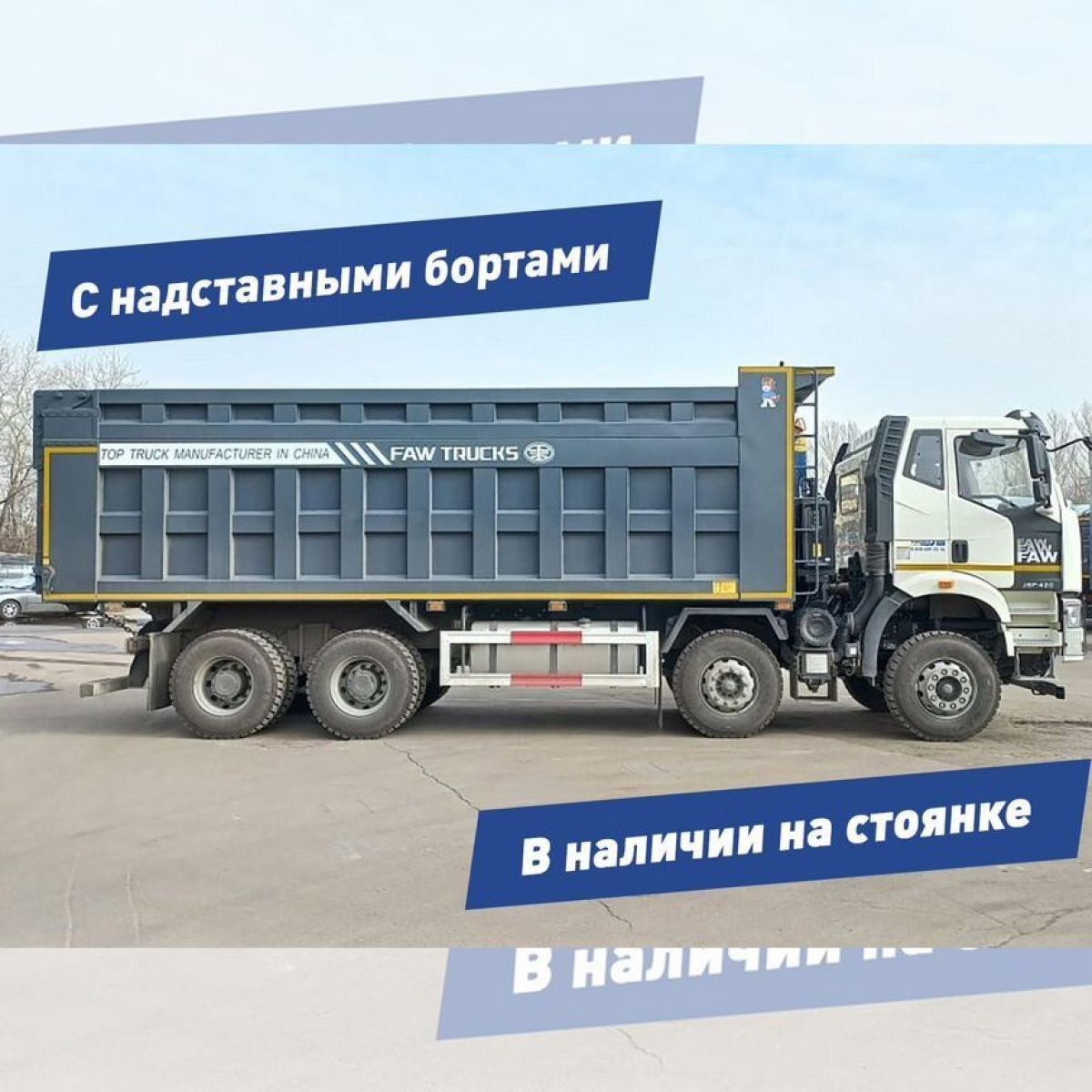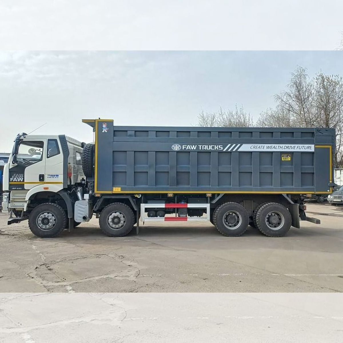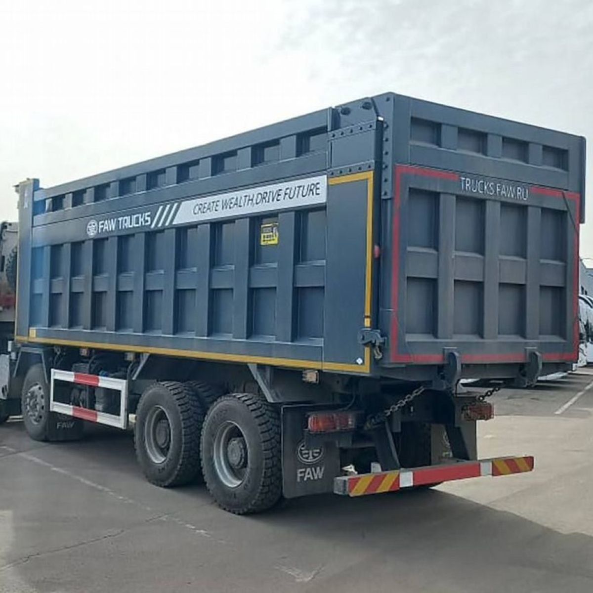 Новейший четырехосный самосвал FАW с кабиной J6 предназначен для работы в тяжелых условиях с сыпучими грузами различной направленности. Данная модель оснащена высоким кузовом с надставными бортами, объемом 34 м3 (без бортов 26 м3).