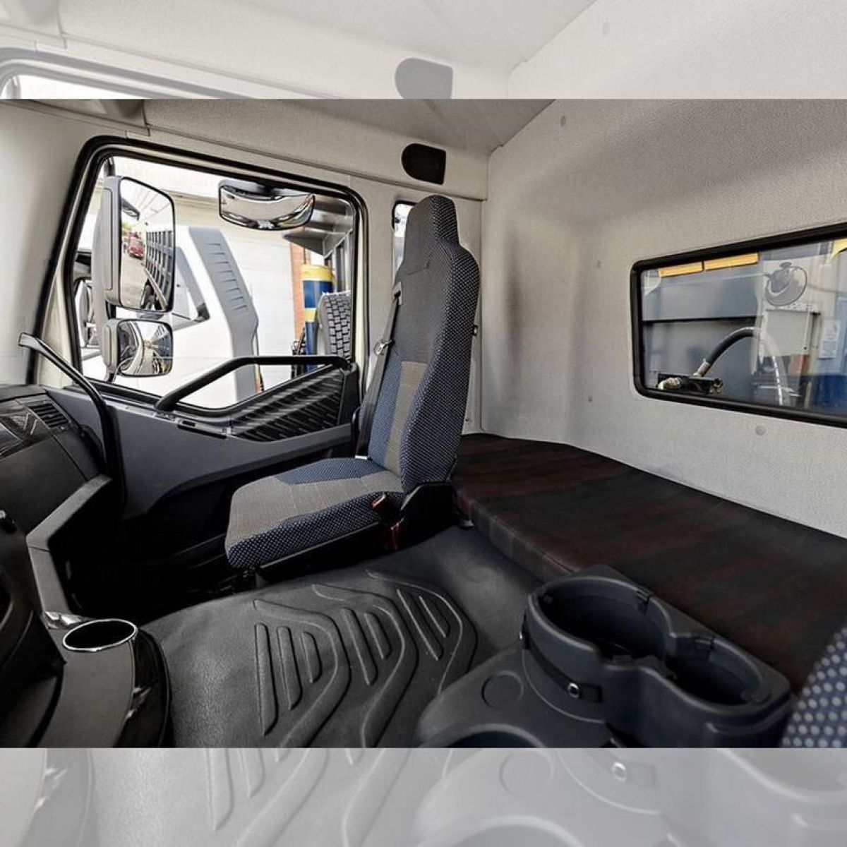 - Кабина: цельнометаллическая, двухдверная, двухместная, со спальным местом
