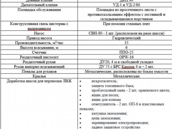 Характеристики цистерны: