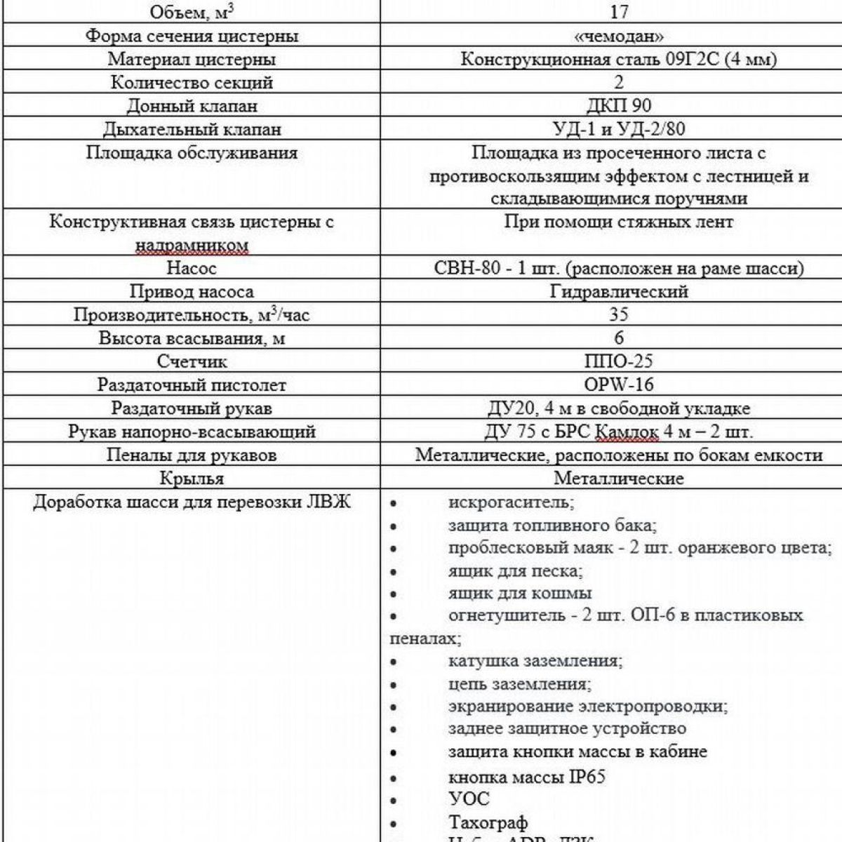 - Объем цистерны17 м3