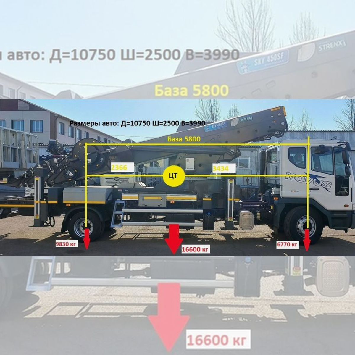 Высота подъема: 45 метров, Рабочий радиус: 28 метров
