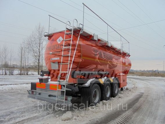 Полуприцеп-цистерна бензовоз НЕФАЗ 96896-0210430 из стали емкостью 30 куб. м., предназначенный для перевозки светлых нефтепродуктов. Характеристика Показатель Номинальная вместимость, л 30000 Исполнение 3-осный односкатный Габариты,мм.: длина х ширина х высота 10660х2500х3600 Снаряженная масса 7500 Масса полная при плотности нефтепродукта q=0,83 кг/м3, кг. 32400 Распределение полной массы (плотность перевозимой жидкости 846 кг/м3) на седло тягача 9 980; на оси колес 22 420; Межосевое расстояние, мм 1360 Высота ССУ, мм 1250-1345 Базовая комплектация: «Круг» формы с волнорезами. Гарантия на корпус – 3 года материал корпуса цистерны– сталь 09Г2С количество отсеков 4 раздельный слив через шаровые краны с ручным управлением Ду-80 с левой стороны, с подготовкой под систему нижнего налива, указатели видов топлива на каждый отсек калибровочная планка (мерный уголок) в каждом отсеке загрузочная крышка горловины алюминиевая ДКП или Civacon или Sening донный клапан с пневмоуправлением ДУ 100 фирмы Civacon (Голландия) или Sening(германия) два композитных сливных рукава ДУ 80, укомплектованные быстроразъемными наконечниками Kamlock с двумя пластмассовыми пеналами с закрывающимися крышками верхняя площадка обслуживания из просечённого алюминия исключающего скольжение складная лестница в задней части цистерны (50 см от дорожного полотна) с просечными ступенями, исключающими скольжение верхний складной поручень (леер) высотой не менее 1-го метра, приводимый в действие механическим приводом с уровня земли защитное ограждение заливных горловин по всей длине корпуса (экологический короб), с выводом дренажа в задней части цистерны, с установкой на сливах шаровых кранов два пластиковых пенала с огнетушителями ОП-6 табличка на задней части полуприцепа с размером 400х300 (1 ) согласно с п.п. 5.3.2.1.1, 5.3.2.1.3 «ДОПОГ Европейское соглашение о международной перевозке опасных грузов» сосуд поверяется как транспортная мера полной вместимости, согласно требованиям ГОСТ Р 8.600-2011 с выдачей Свидетельства о поверке Подготовка под нижний налив и рекуперацию паров входит в стандартную стоимость. Шасси 3-х осный агрегат SAF intra. подвеска пневматическая, с подъёмной передней осью шины размером 385/65R22.5 (6+1 шт.) тормозная система ABS/EBS «HALDEX» тормозные механизмы барабанные пластиковые крылья тормоз стояночный с приводом от энергоаккумуляторов шкворень KZ1008 (2") с тарелкой опоры стояночные «JOST», BPW либо Haacon с нагрузкой до 24 т. Технологический шкаф, расположенный между опорным устройством и передней осью тележки, обеспечивающий вывод сливных коммуникаций на левую сторону: раздельный слив из каждого отсека; пластиковый ящик для нейтрализующего вещества массой не менее 25кг.; механизм подъема дверцы, обеспечивающий вертикальное расположение крышки в открытом положении. пневматический блок управления донными клапанами с маркировкой номеров отсеков «Civacon» Ящик для кошмы на каждый отсек противооткатные упоры 2 шт. заземление цепь заземления. по две пластины заземления, приваренные к корпусу, с каждой стороны штырь заземления Электричество 24 V 1х15-полюсной электрический разъем 2х7-полюсной электрический разъем розетка для подсоединения ABS/EBS габаритное освещение ADR панель с задним освещением: поворот, габарит, задний ход. Электропроводка и фонари фирмы «ASPOK» Покраска импортными маслобензостойкими эмалями с нанесением логотипа Покуп
