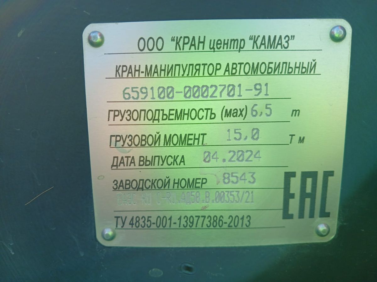 Лот №1: Транспортное средство, наименование: специальный, грузовой бортовой оснащенный краном-манипулятором 659100, шасси на базе КАМАЗ, VIN XDF65910010008909, год изготовления: 2024, ДВС: КАМАЗ, 740.705-300, четырехтактный дизель; ПТС 164301084961684 от 22.03.2024 г.