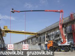Автогидроподъёмник Чайка-Socage T328 с лебёдкой (высота подъёма – 28 м; грузоподъёмность люльки – 400 кг) на базе КАМАЗ-43118 Гидроподъёмник, установленный на вездеход, имеет следующие характеристики: • Высота подъёма – 28 метра; • Максимальный вылет стрелы – 19,7 метров; • Грузоподъёмность люльки – 300 кг. Характеристики лебёдки, которая установлена на стрелу: • Максимальная грузоподъёмность – 1000 кг; • Максимальный вылет – 12,9 метров.