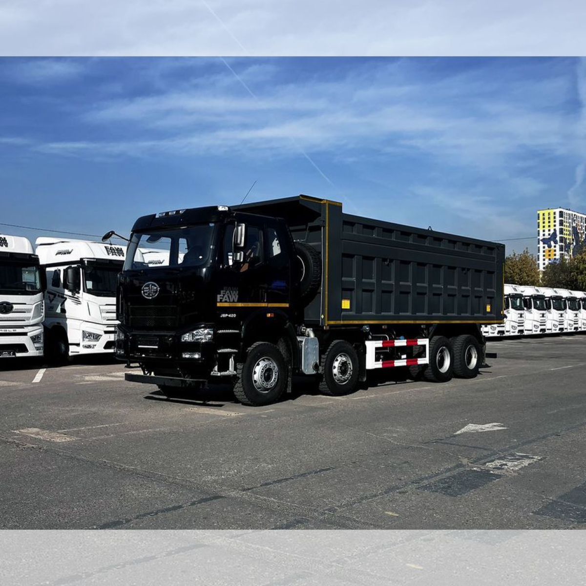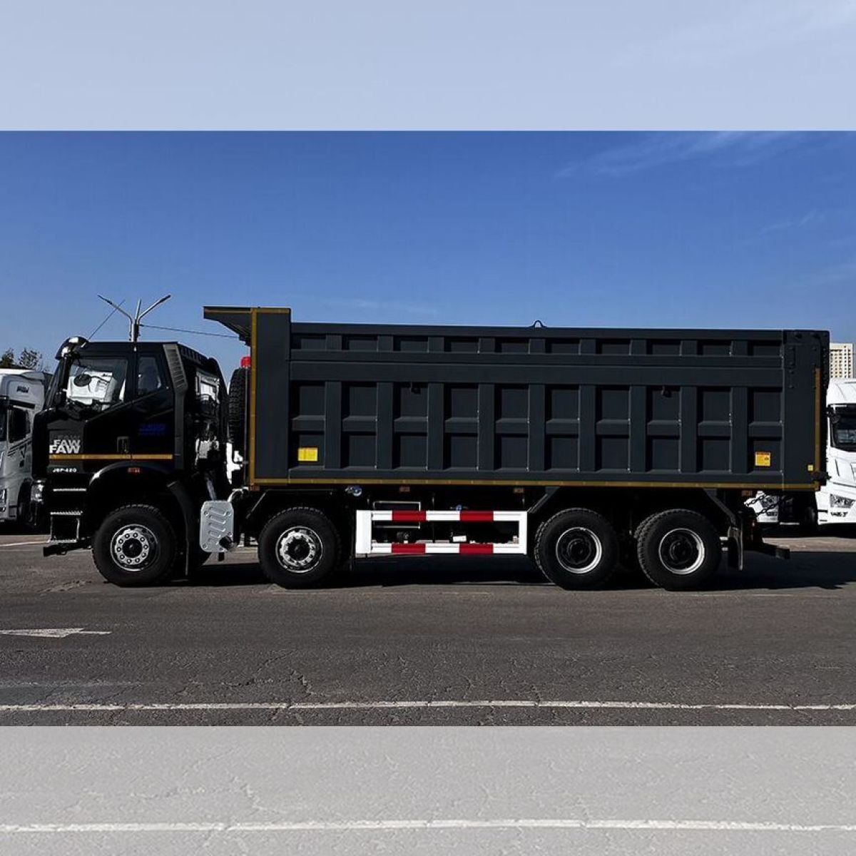 Новейший четырехосный самосвал FАW с кабиной J6 предназначен для работы в тяжелых условиях с сыпучими грузами различной направленности. Данная модель оснащена высоким кузовом, объемом 34 м3.