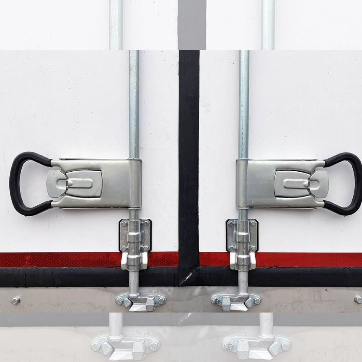 - Фурнитура (петли, замки, ручки): по три оцинкованных петли на каждой дверной створке. По одной запорной оцинкованной штанге на каждой дверной створке. Ручка двери РUSН (оцинкованная), 4 шт. Фиксаторы дверей в открытом положении (Г- образные) 2 шт.