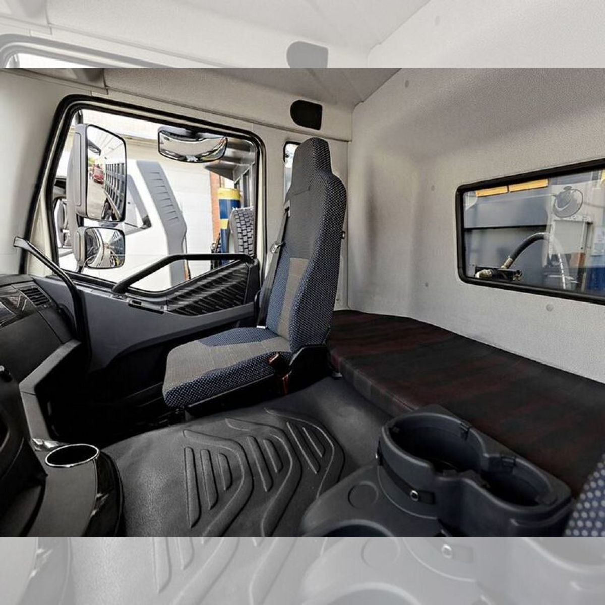- Кабина: цельнометаллическая, двухдверная, двухместная, со спальным местом