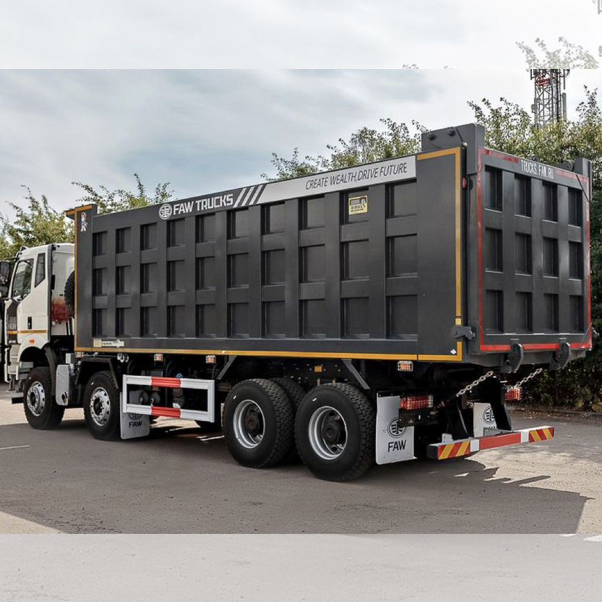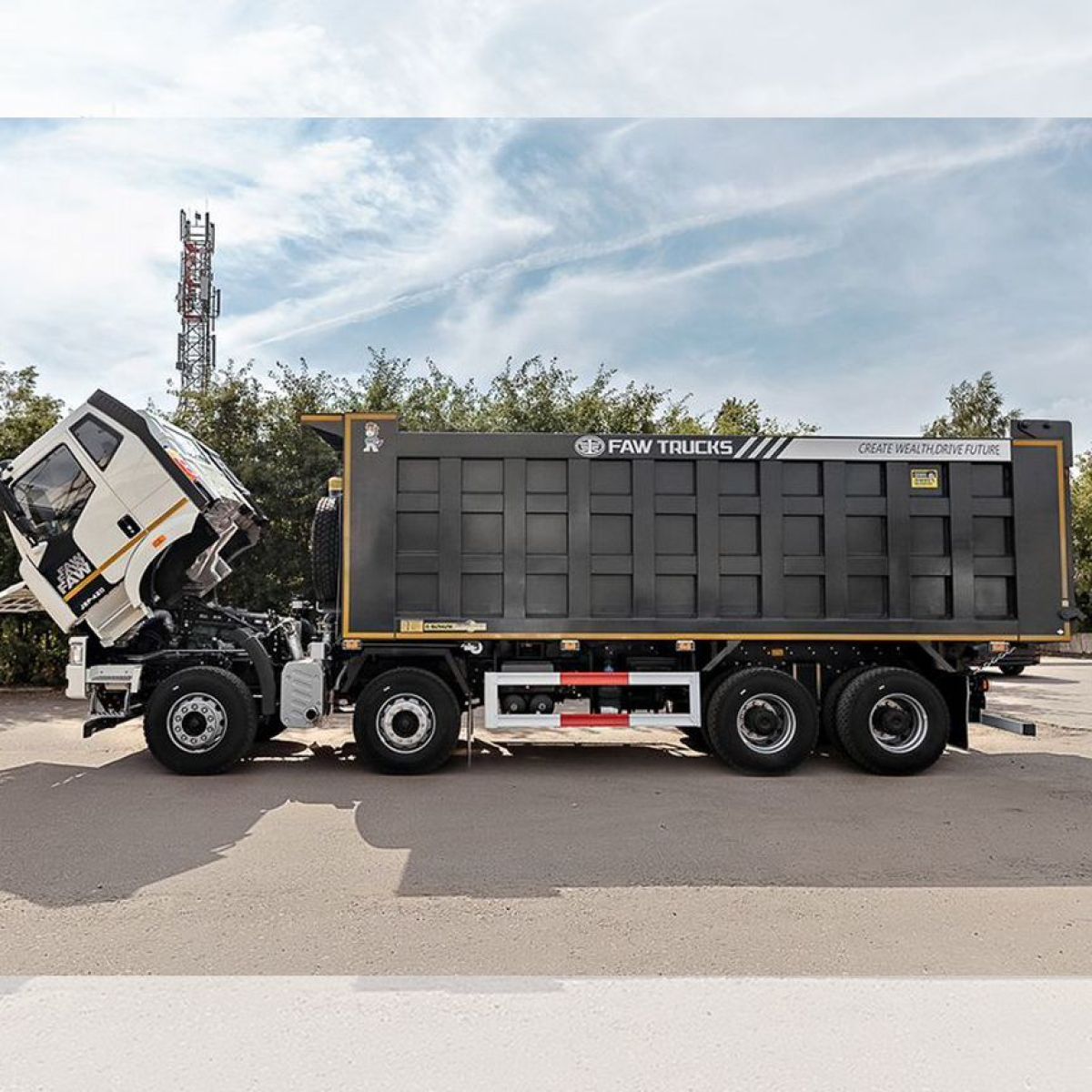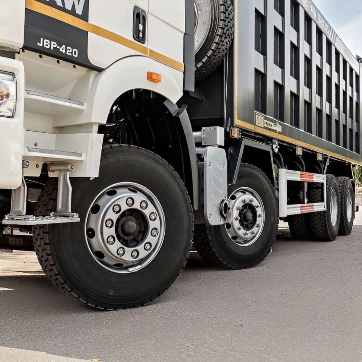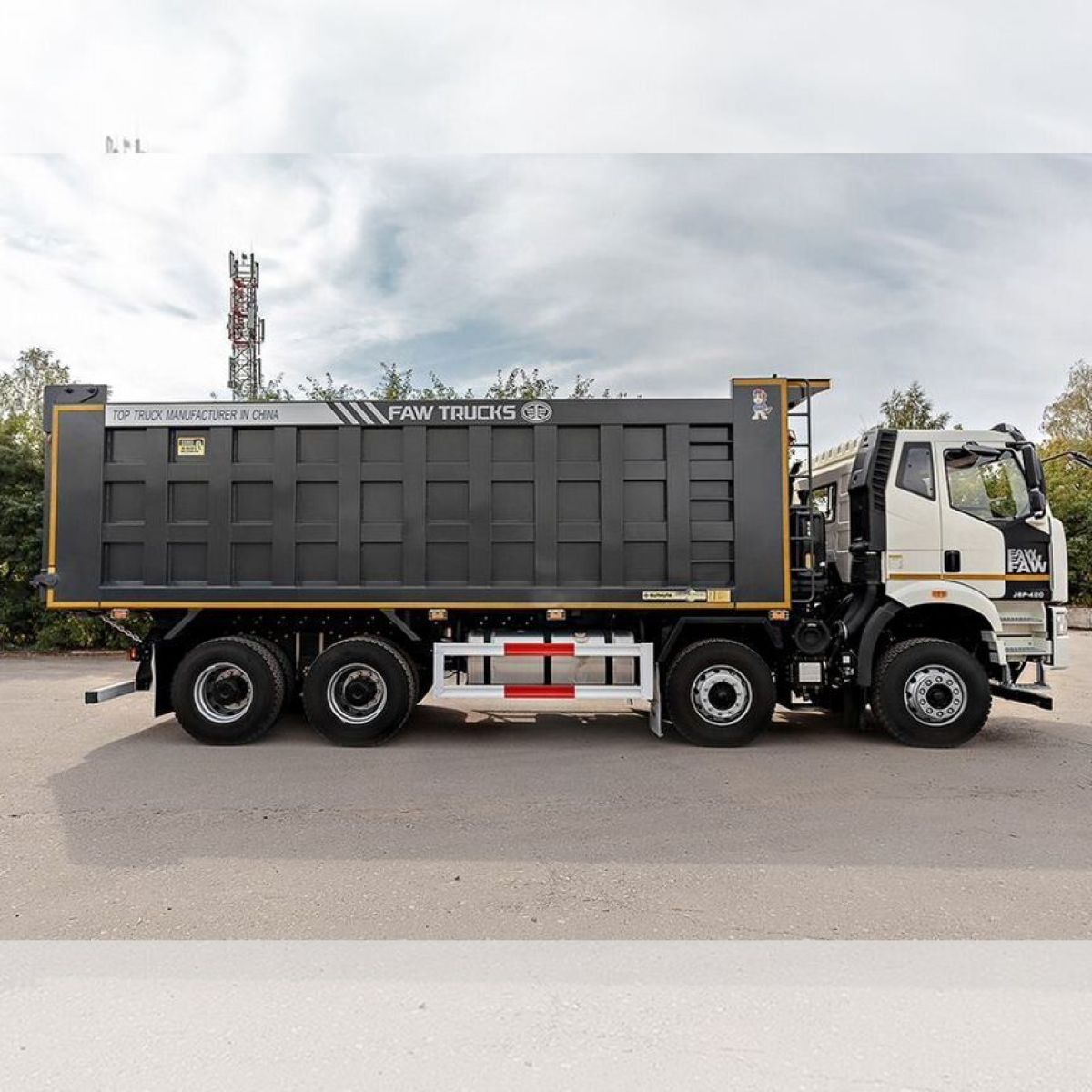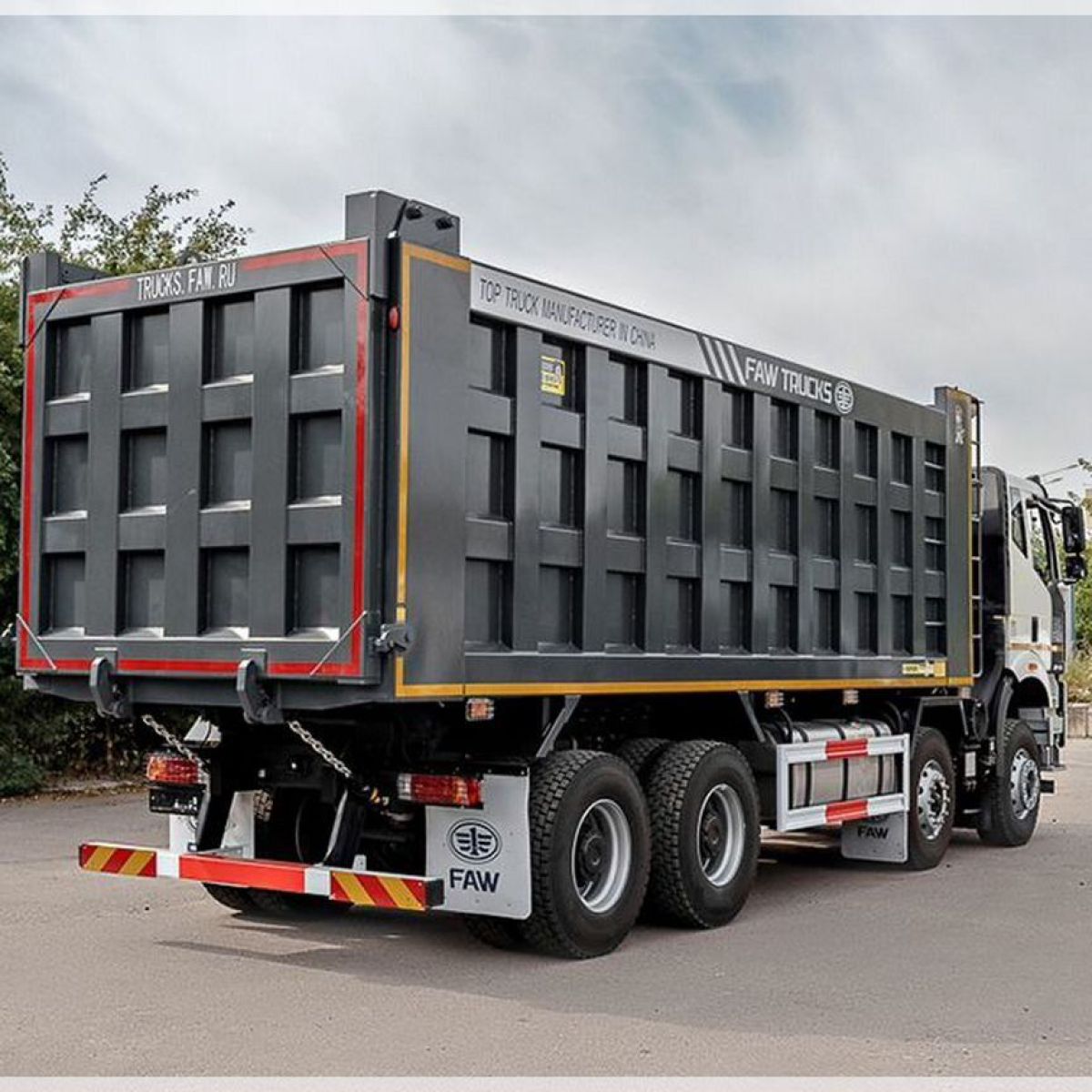 Новейший четырехосный самосвал FАW с кабиной J6 предназначен для работы в тяжелых условиях с сыпучими грузами различной направленности. Данная модель оснащена высоким кузовом, объемом 34 м3.
