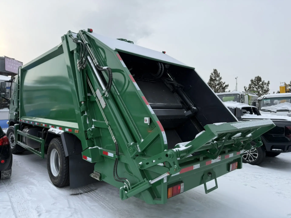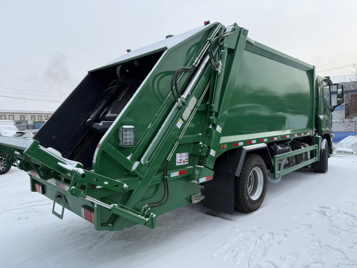 6HK1-TCG61, 240 л.с. коробка передач: Fast Gear, 8-ступенчатая полная масса 18000 кг, снаряженная масса 6150 кг. Объем кузова 16.3 м³, полностью гидравлическое управление, 2 пульта управления, пульт дистанционного управления, механизм опрокидывания контейнеров 240л + 660л + 1100л