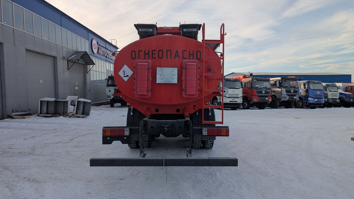 Доработка шасси под ДОПОГ: Брус задний защитный; Цепь заземления на защитном заднем брусе; Зашита топливных баков с четырех сторон; Проблесковые маячки на металлической дуге - 2шт; Кнопка выключения массы в кабине(с защитой) IP65; Кнопка выключения массы на раме IP65(изолированный); Искрогаситель сертифицированный съемный; Экранированная электропроводка; Светоотражающая маркировка; Наклейки знака опасности Крепление для информационной таблички класса опасности.