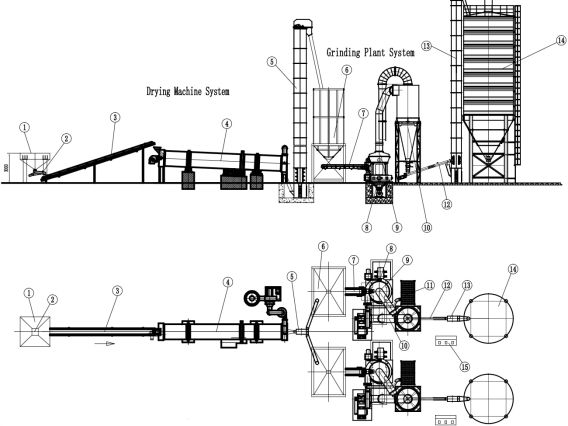 1. Секция подготовки и сушки сырья (сушильный барабан 1500х12000 мм);