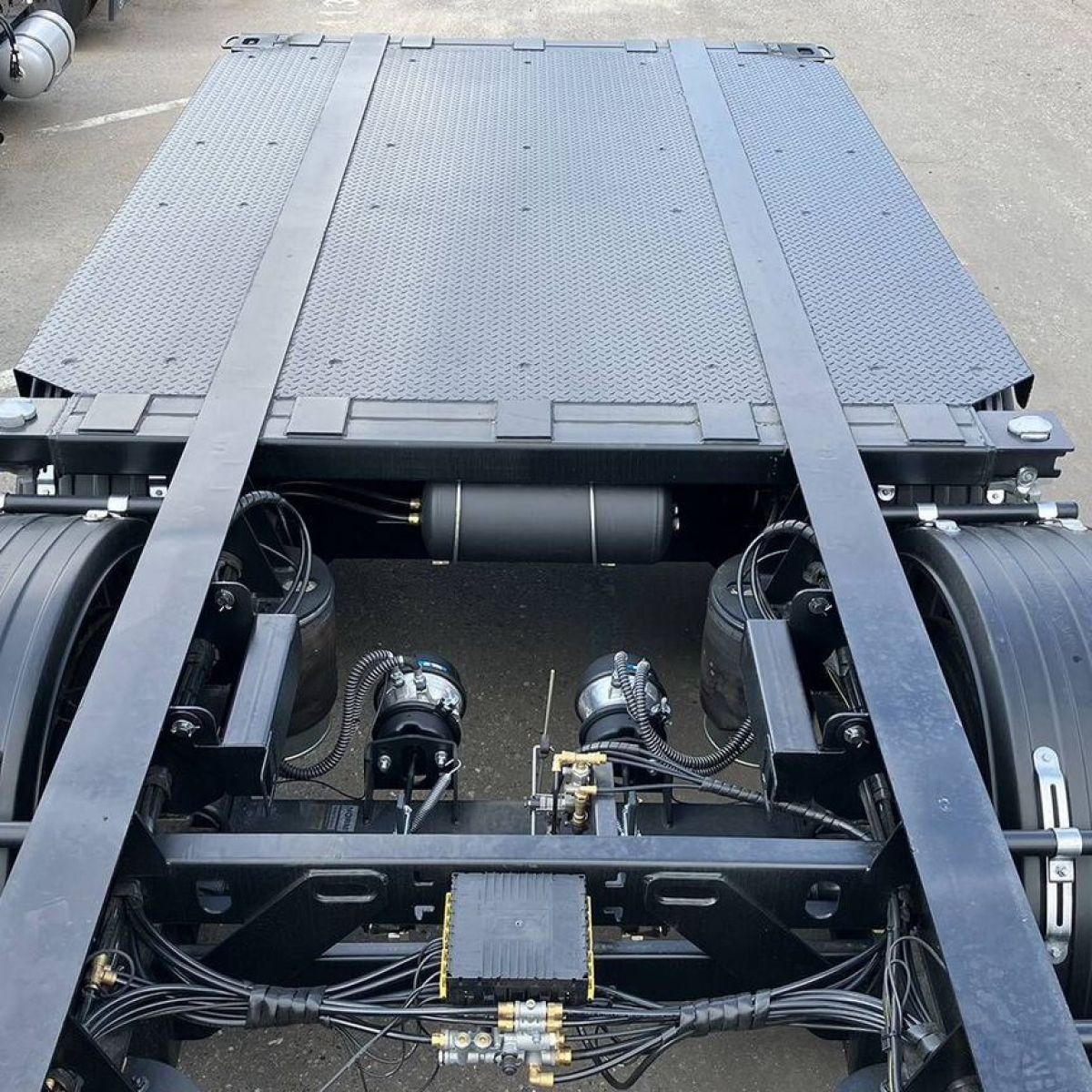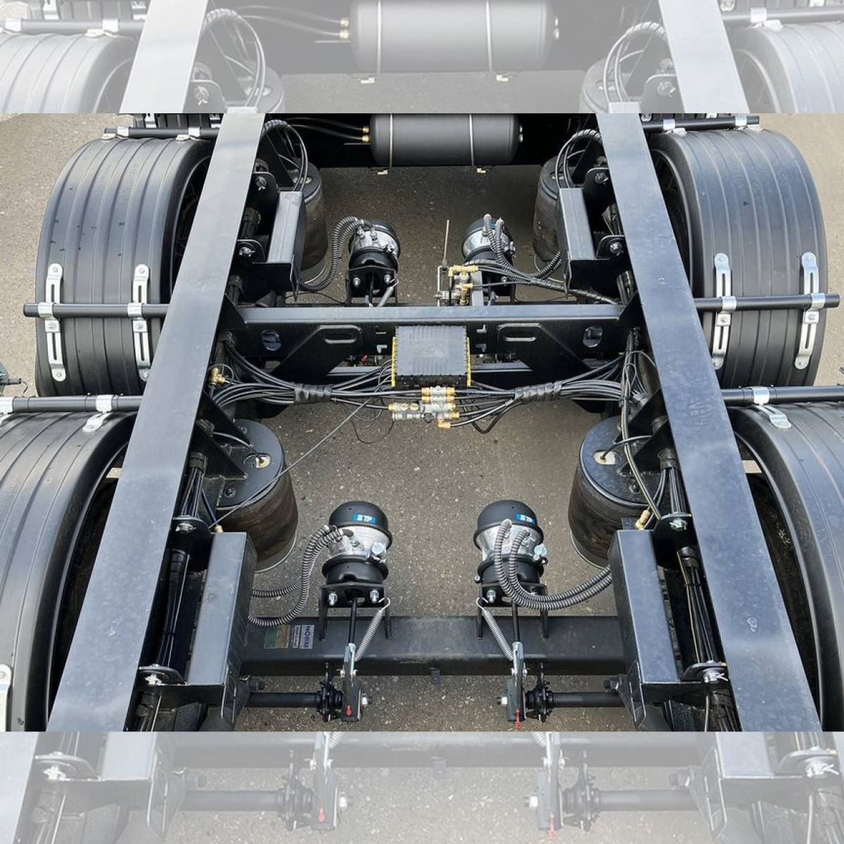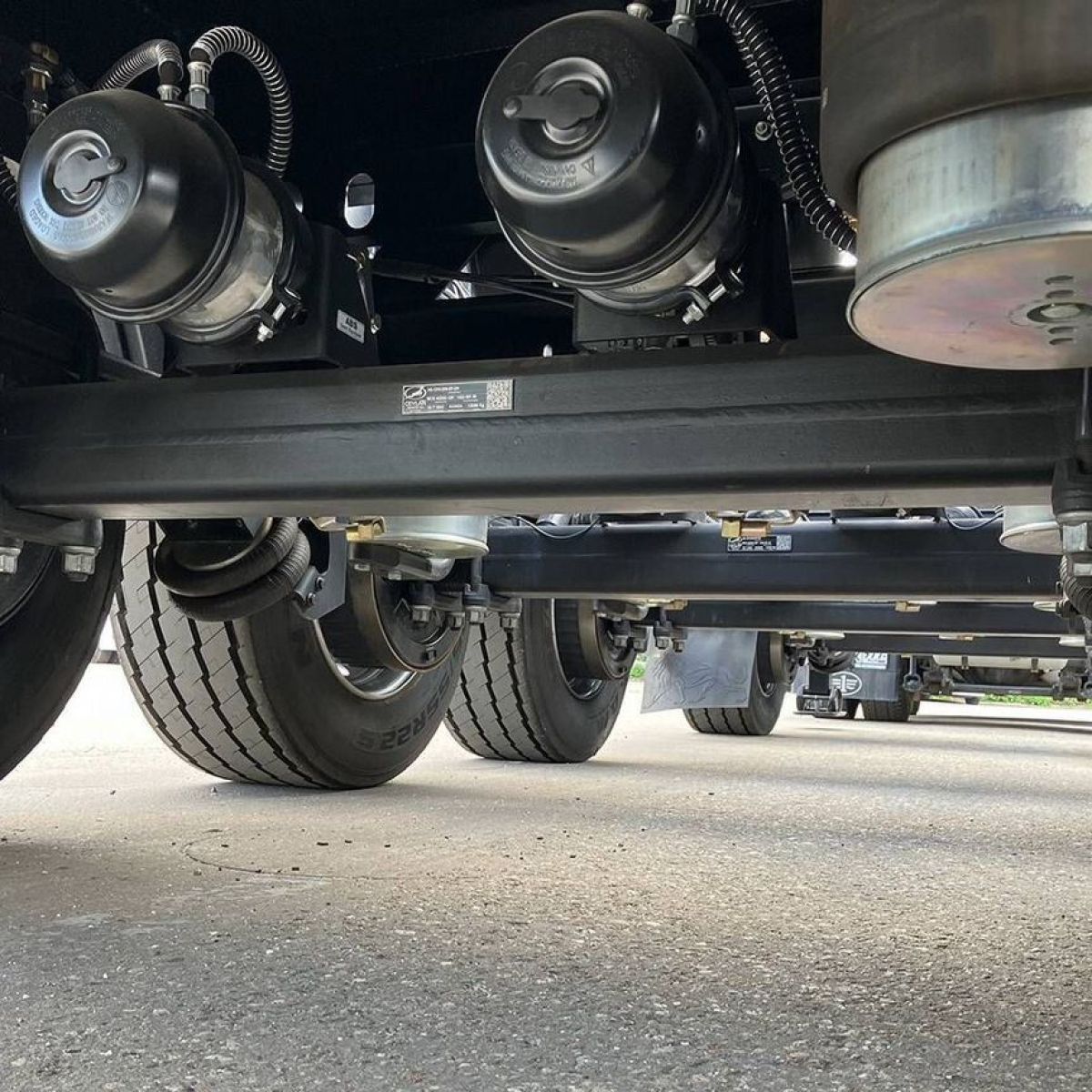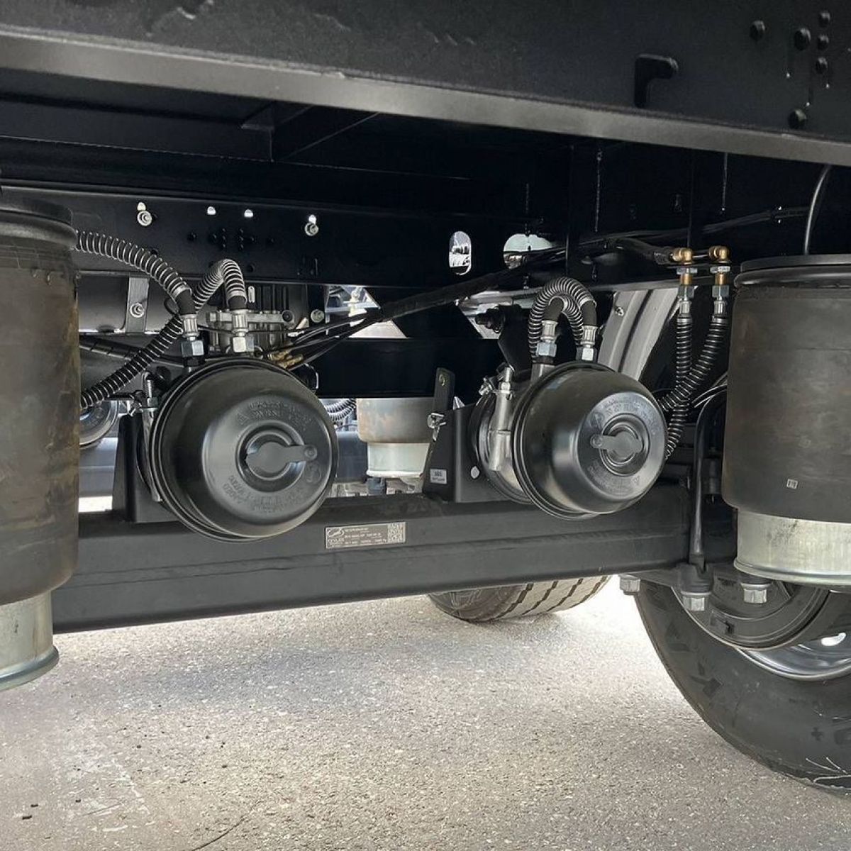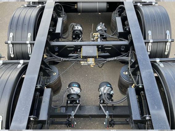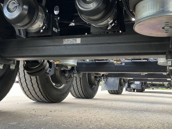 - Подвеска: пневматическая (две пневмоподушки на каждую ось с телескопическими амортизаторами), первая и четвёртая оси подъёмные
