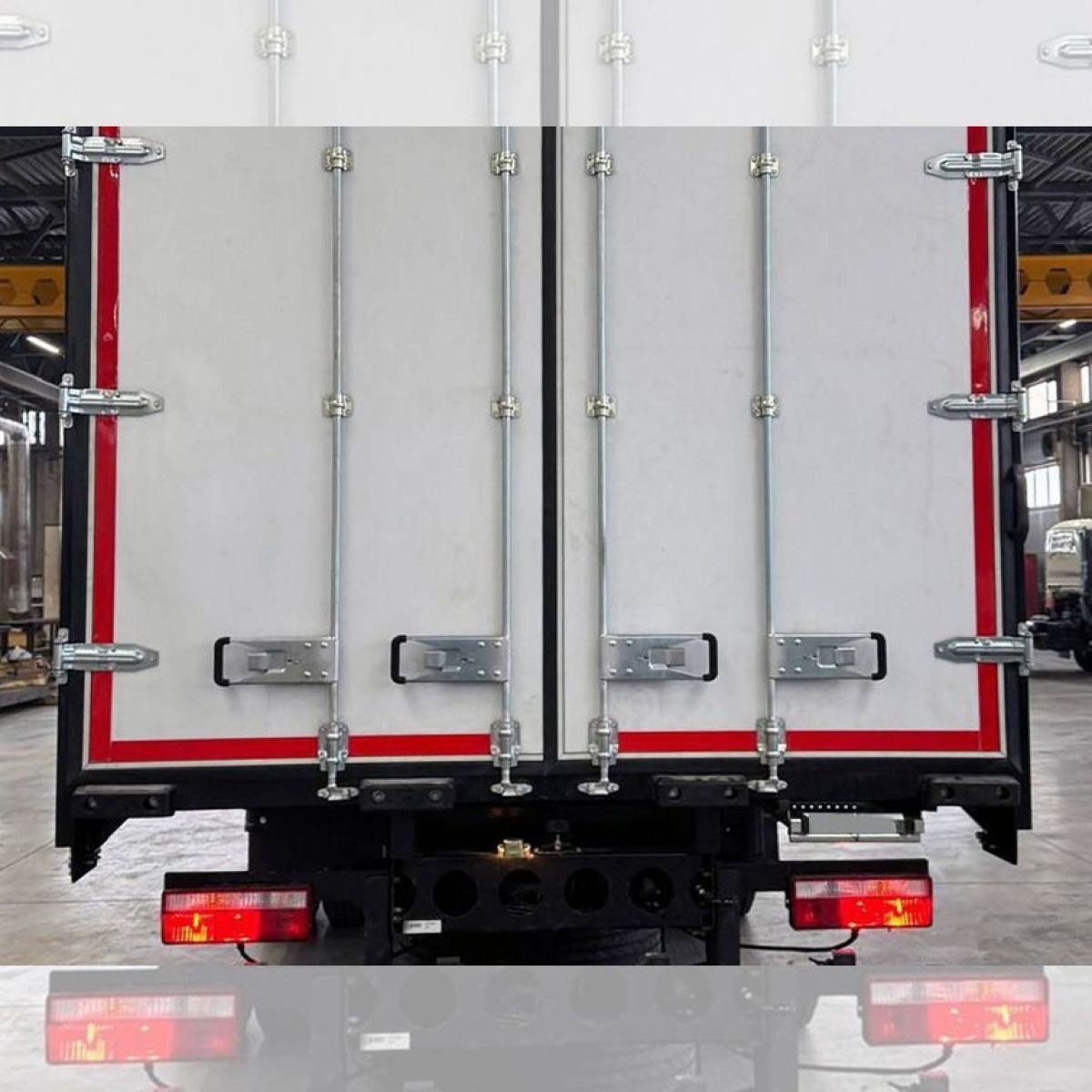 - Прочее оборудование: ластиковые крылья, брызговики, боковые влагозащитные габаритные огни 8 шт, задний противоподткатный брус, устройства световой сигнализации и светоотражающая лента, лестница для подъема на платформу