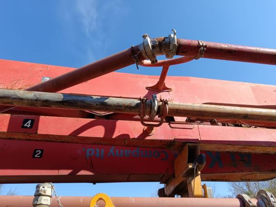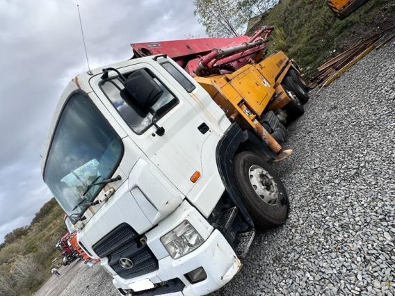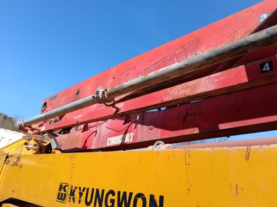 Реализуется автобетононасос на базе HYUNDAI GOLD (KYUNGWON). Год выпуска 2011. Стрела 42 метра. Стрела выполнена из стали Weldox и Domex (Швеция). Масляный охладитель EMMEGI. Система гидравлики Bosch Rexroth. Система подъёма стрелы HAWE (Германия). Производительность насоса 150 кубических метров в час. Диаметр трубопровода 125 мм. Глубина подачи 28,3 м. Колёсная формула 6х4. Модель двигателя D6АС. Экологический стандарт Euro IV. Рабочий объём 11149 см3. Мощность 340 л.с. (250 кВт). Пробег 210000 км. Масса без нагрузки 23180 кг. Объём топливного бака 400 л. Требуется замена насоса (машина по ряду причин длительное время не эксплуатируется) также внимание к ДВС. Есть видео-обзор. (Сочи).